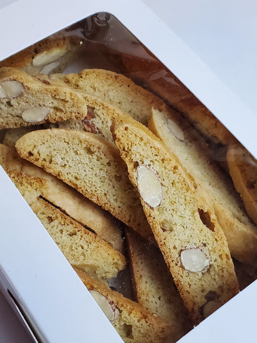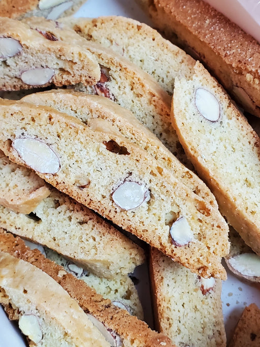 Crisp, golden almond biscotti made with organic butter and sugar, real vanilla, and Inspire Farms eggs—baked for that classic crunch and perfect fo...
