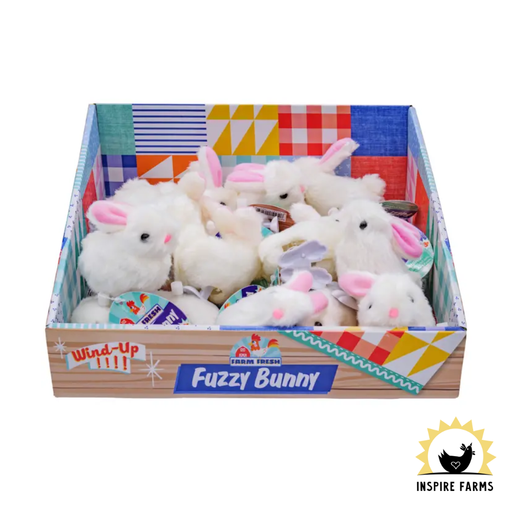 Bring a little springtime magic home with this Farm Fresh White Fuzzy Bunny Wind-Up. Covered in soft white fuzz with pink ears and a tiny pink nose...